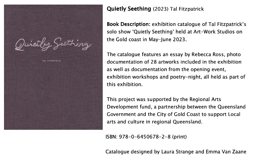 Tal Fitzpatrick has self-published a collection of exhibition catalogues that document some of her key projects to date as well as a craftivism manifesto/methodology for those interested in the practice.