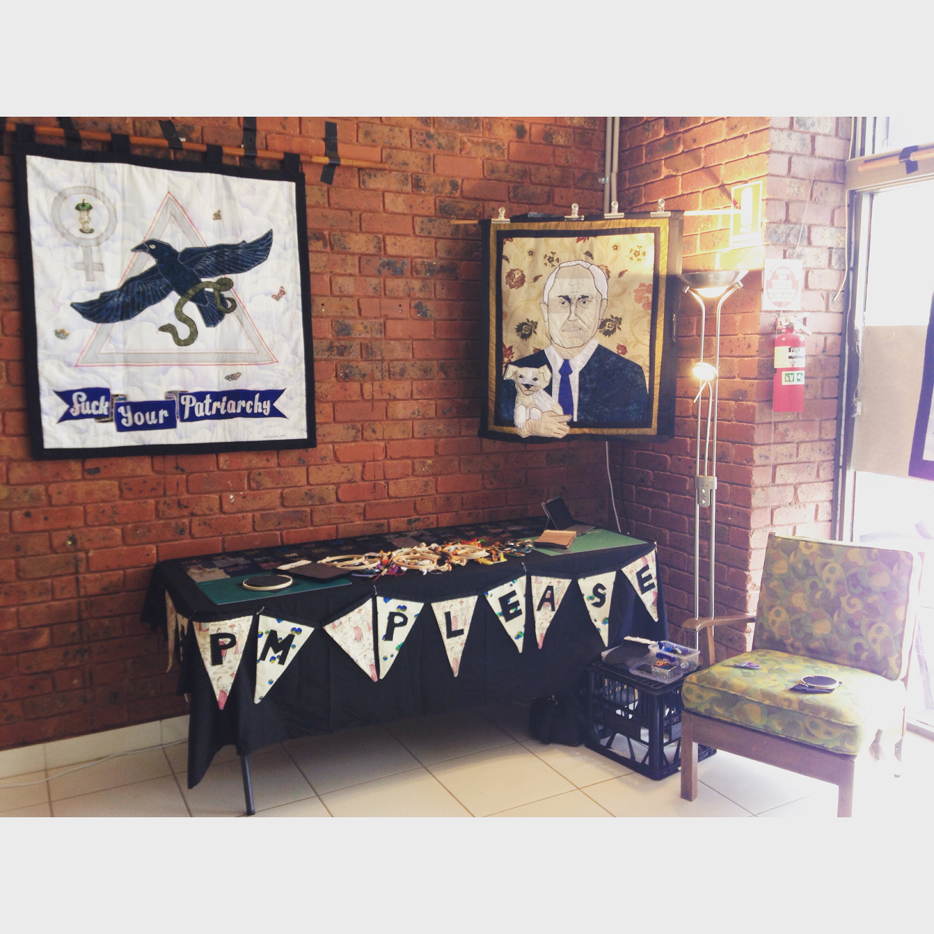 After receiving this message I negotiated to have the PM Please quilt donated to the Museum of Australian Democracy, Old Parliament House, Canberra. The hanging was accepted by the museum's acquisition committee and became part of the permanent collection as of the 20th March 2017. Also part of the museum's collection is my grandmother Dawn Fitzpatrick's artwork "The Prime Ministers at the Marble Bar" (1983/97) which is a large textile wall hanging featuring a portrait of every Australian Prime Ministers from 1901 until 2007.