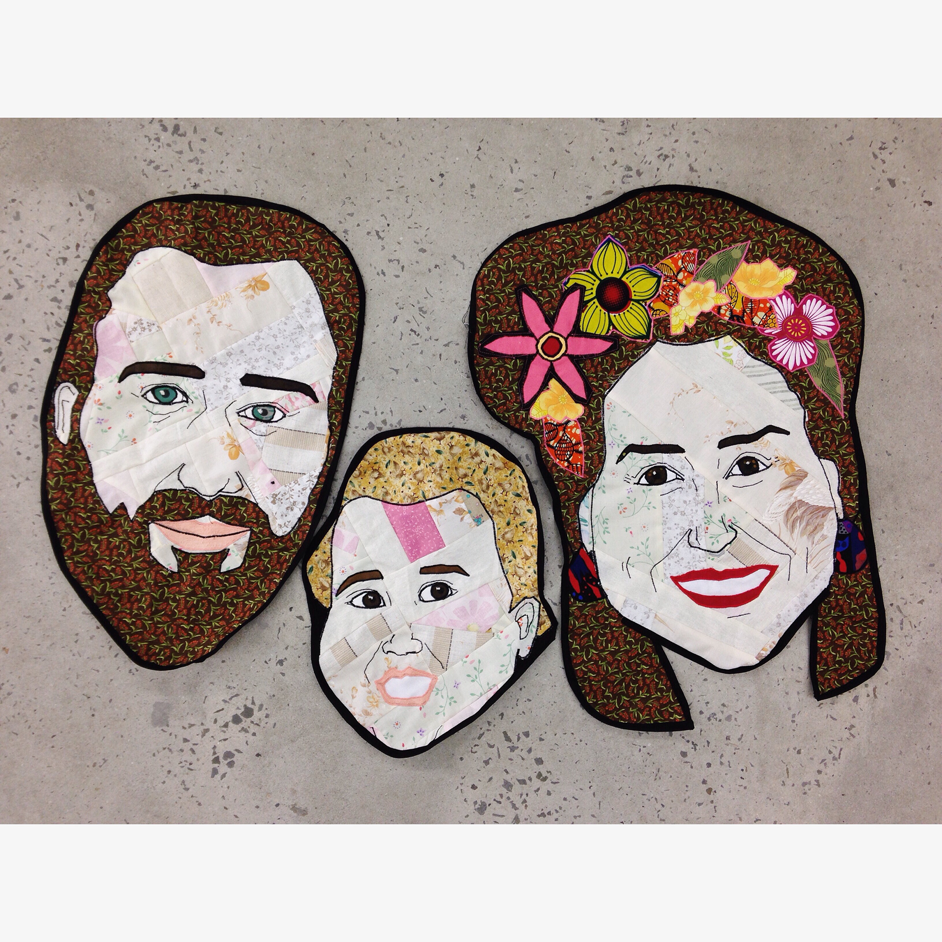 Family Portrait (2016) 45cm x 80cm, appliqué quilt made using new and recycled materials.