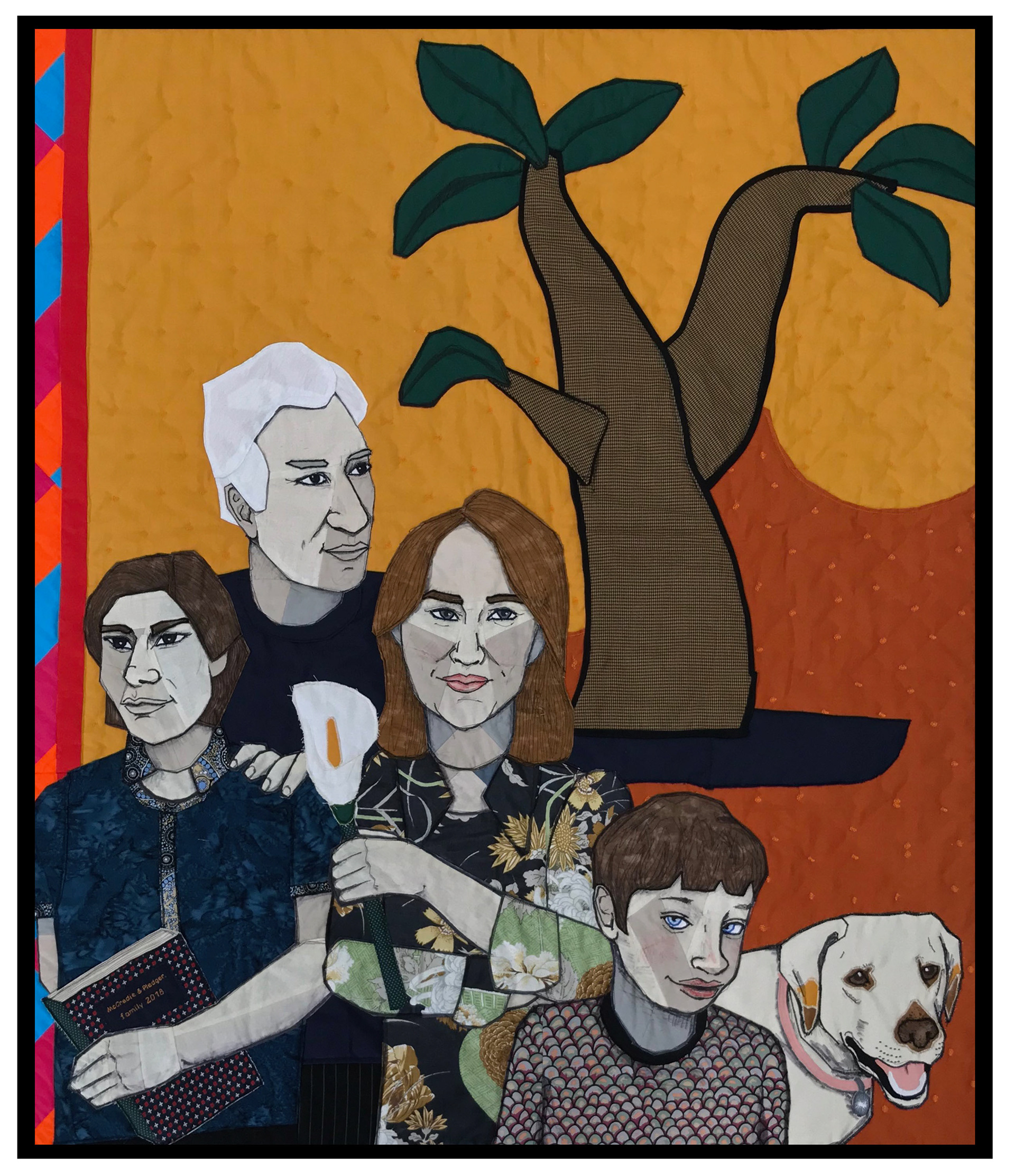 Family Portrait (2019) 175cm x 195cm, appliqué quilt made using new and recycled materials.